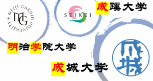 ~成成明學(xué)~日本中堅(jiān)私立大學(xué)群【成成明學(xué)】是由成城大學(xué)(せいじょうだいがく、Seijo University)、成蹊大學(xué)(せいけいだいがく、Seikei University)、明治學(xué)院大學(xué)(めいじがくいんだいがく、Meiji Gakuin University)三所大學(xué)組成,其升學(xué)難易度基本在【MARCH】和【日東駒専】之間,【成成明學(xué)】的簡(jiǎn)稱(chēng)是為成城大學(xué)和成蹊大學(xué)的首字加上明治學(xué)院大學(xué)的首尾字合體的縮寫(xiě)組成,讀成(せいせいめいがく)。?配圖:成城明學(xué)logo【成成明學(xué)】偏差值帶基本處于56左